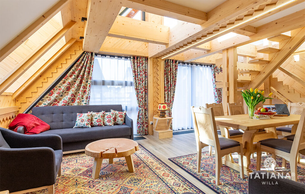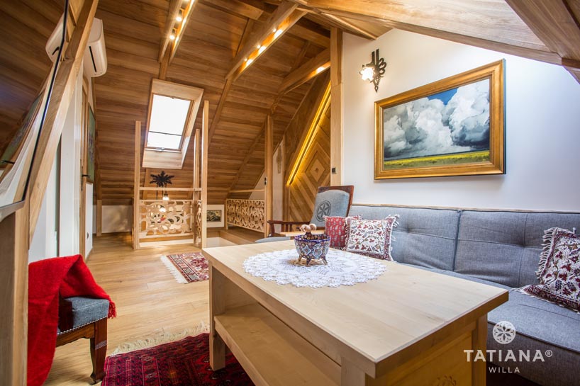 Zawsze z radością odwiedzamy Willę Tatiana, ponieważ jest to cudowne miejsce do wypoczynku w otoczeniu wspaniałego rzemiosła góralskiego , sztuki , gustownych , wysmakowanych pomieszczeń , które dają przytulny klimat i chęć do przebywania i powrotu po trudach górskich wypraw.Tym razem odwiedziliśmy Apartament Tatrzański, dwupoziomowy, dający intymność gościom. Oczywiście apartament świetnie wyposażony we wszystko co potrzeba dwa saloniki piękne sypialnie,łazienki.Bardzo polecamy.
